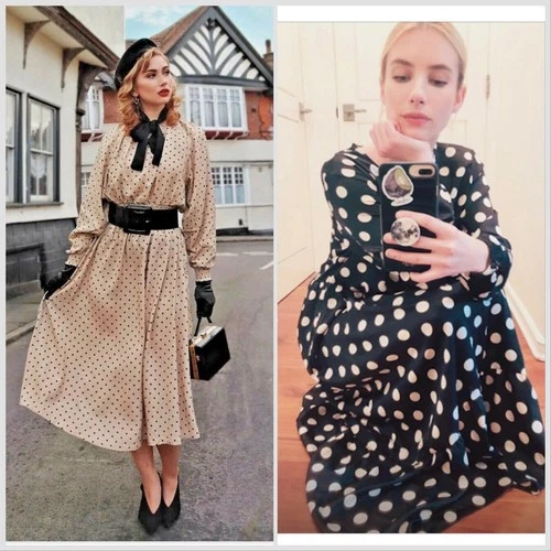 VESTIDO H&M HM Crepado Negro Lunares Poliéster o Beige Ahumado Viscosa Punteada