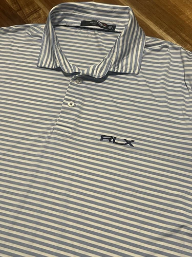 Polo Ralph Lauren RLX Para Hombres Grande Golf Blanco Azul Teal Rayas Usada en Excelente Condición