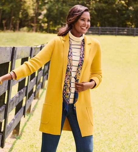 Chaqueta Suéter Talbots Amarillo Mostaza Punto Milán Mezcla Lana Talla XS