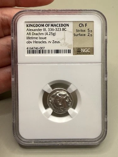 Alejandro III Dracma NGC F 5/5 2/5 Edición de por vida