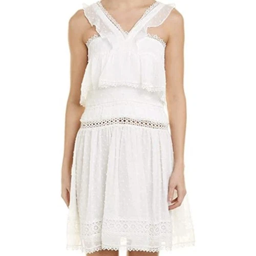 Vestido Monique Lhuillier Talla 6 Ojales Encaje Cóctel Fiesta Fecha Ensayo Cena