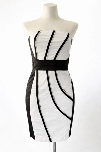 Vestido Karen Millen Monocromo Bodycon con Detalle de Cremallera - UK 10 (Colección 2009)