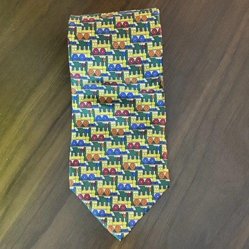 Corbata de seda geométrica tren vapor colorido NAZARENO GABRIELLI hecha en Italia