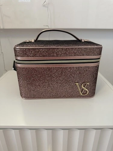 Victoria's Secret Caja de Maquillaje Lentejuelas Rosa Estuche de Viaje Cosmético 3 Secciones NUEVO