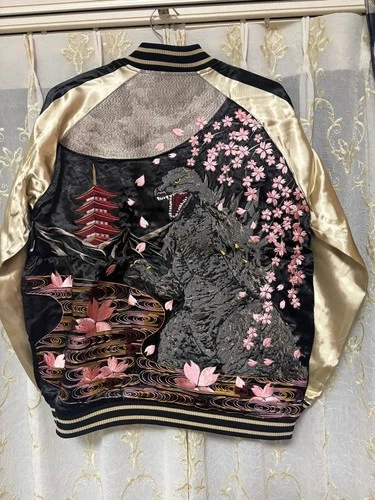 Chaqueta Nishiki Sukajan Godzilla Reversible Negra Rayón Usada
