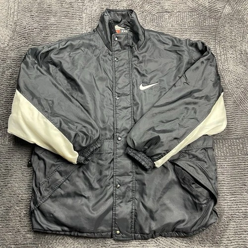 Chaqueta deportiva vintage Nike Team XXL negra blanca cremallera completa cortavientos Swoosh