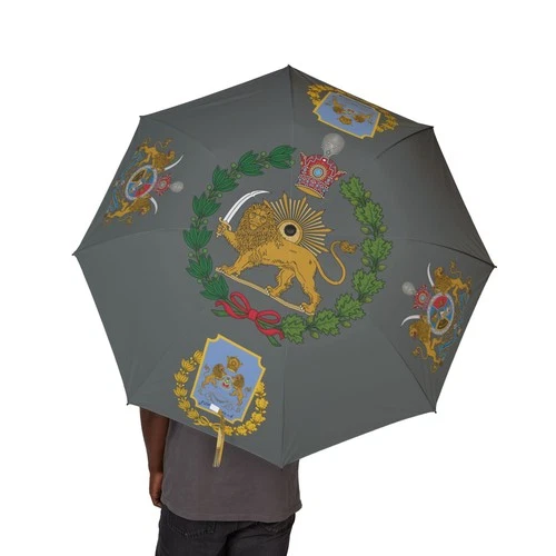 Paraguas Bandera Irán | León y Sol | Emblema Pahlavi | Guardia Javidan | Gris Oscuro