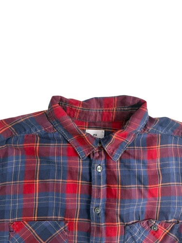 Camisa de hombre PS Paul Smith roja azul patrón a cuadros ajuste a medida - talla XL