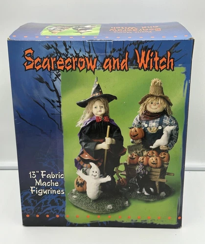 Juego de Estatuillas de Halloween Vintage Espantapájaros y Bruja 13" Tela Maché Decoración