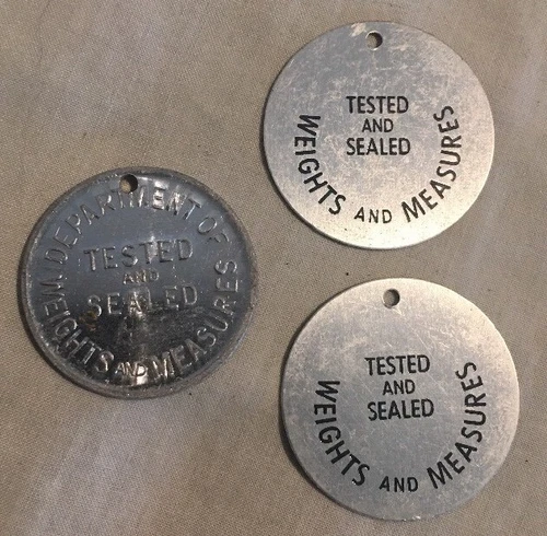 Monedas de inspección probadas y selladas del Departamento de Pesos y Medidas 3 piezas NUEVAS