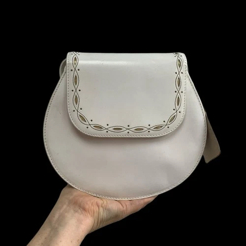 Bolso Carvela Vintage Blanco Bandolera Sillín Luna Años 80 90 Italiano Boxy Riviera