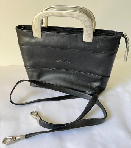 Sergio Tacchini Leather Handbag Black Silver Handles Shoulder Strap