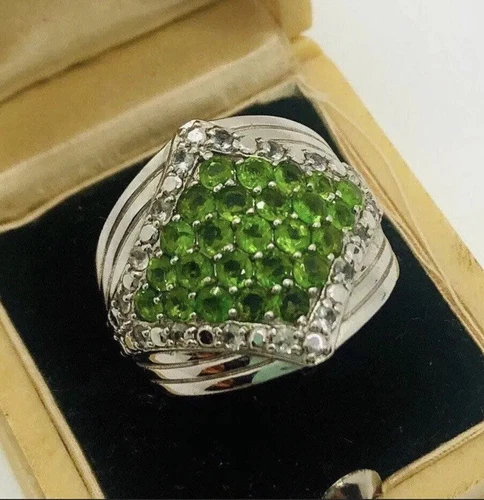 Anillo ancho de plata de ley y cromo diopsido conjunto de pavé 7 gm talla 7 joyería vintage