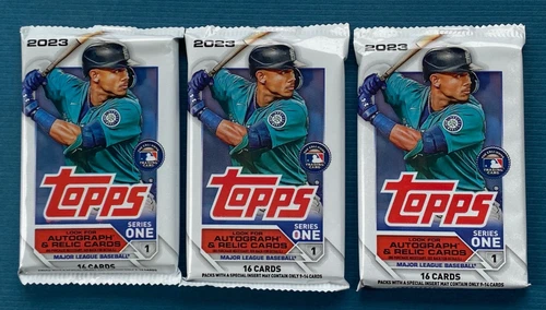 LOTE (3) 2023 TOPPS SERIE 1 PAQUETES * Béisbol MLB * 16 PAQUETES DE CARTAS * Sellado de fábrica