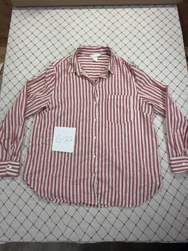 Camisa H&M Mujer 12 Púrpura Blanco Algodón Abotonada Manga Larga Cuello Damas