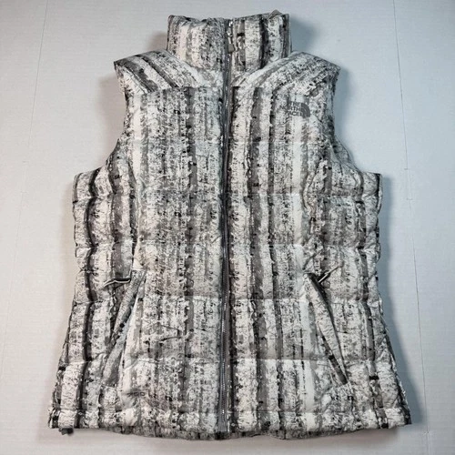 Chaleco The North Face para mujer pequeño gris blanco 700 plumón acolchado cremallera completa plumón de ganso
