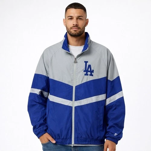 Chaqueta de nailon Starter para hombre Los Angeles Dodgers cremallera completa azul gris XL LSI5E930LAD
