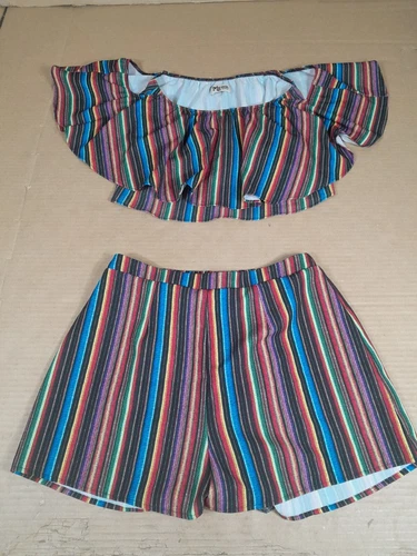 Show Me Your MuMu Nica Top con Volantes Rayas Multicolor/Con Conjunto de Pantalones Cortos Talla M