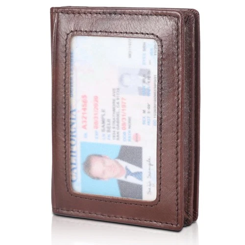 compalo Bloqueo RFID Bolsillo Frontal Minimalista Delgado Cuero Pequeño, Café