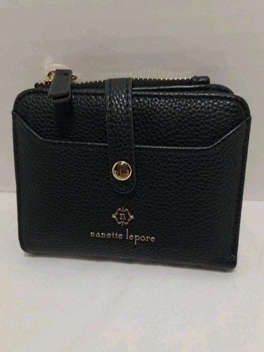 Cartera Nanette Lepore de cuero sintético con guijarros negros doble pliegue cremallera a presión