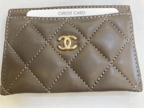 Tarjetero Genuino Cuero Suave Real Taupe Lujo