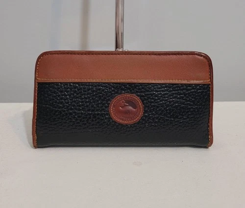 Cartera de chequera continental vintage Dooney & Bourke AWL negra bronceada británica