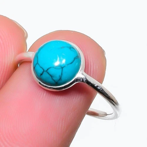 Anillo de plata de ley 925 hecho a mano con piedras preciosas turquesa verde para regalo