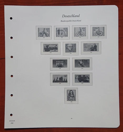 Hoja preimpresa República Federal de Alemania Borek 1985 p. 105 bicicletas conos