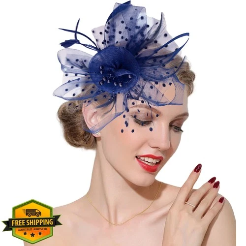 Sombrero Fascinador Pastillero Fiesta del Té Prendas para la cabeza Velo Azul Oscuro