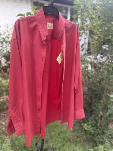 Camisa Stubbs Para Hombre Grande Roja Rica Manga Larga Cuello con Bandas - Sin Botones