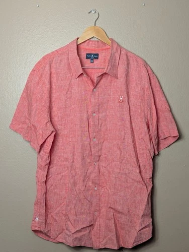 Camisa Psycho Bunny Lino Abotonada Para Hombre XXXL Rosa Manga Corta Verano