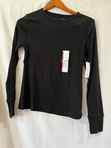 Camiseta Time and Tru Para Mujer Acanalada Mangas Largas Tú eliges Talla Negra Ajustada Nueva