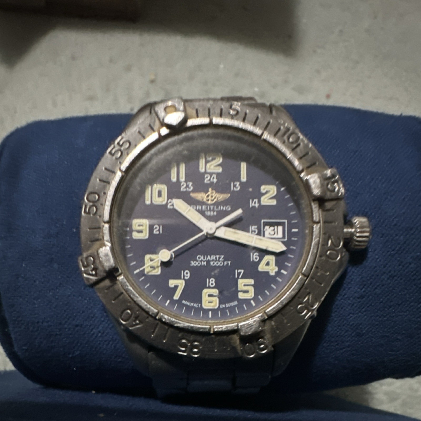 Breitling Quartz Men's Diver Wristwatch Blue Dial 300M. not water resistant