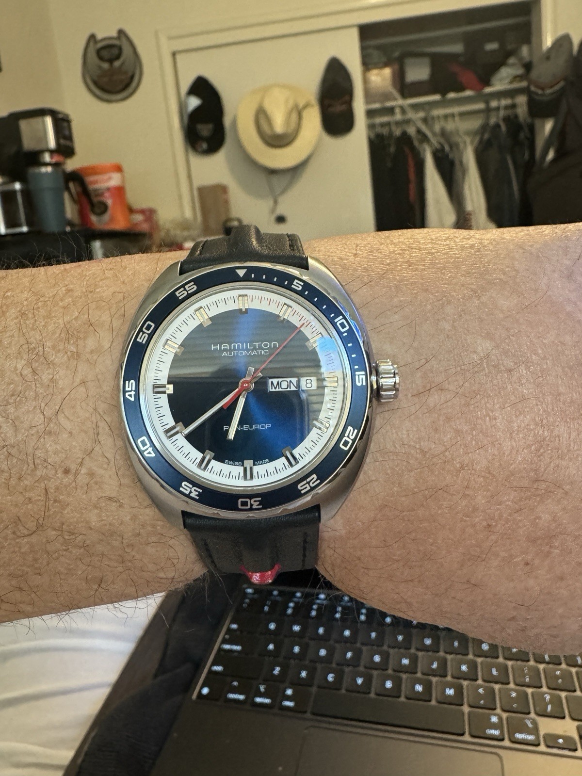 Hamilton Pan Europ Automatic Blue Dial Day Date Black Leather Men's Watch