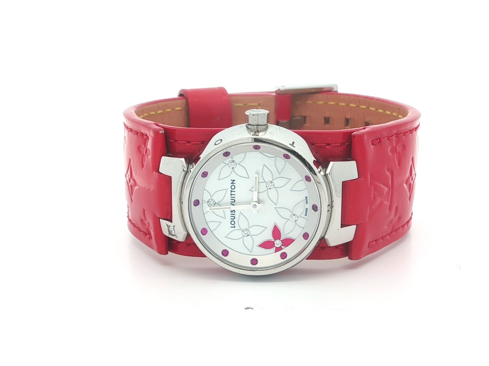Louis Vuitton Limited Edition 28mm Watch Ref. Q121J w/ Printed Red Leather Strap