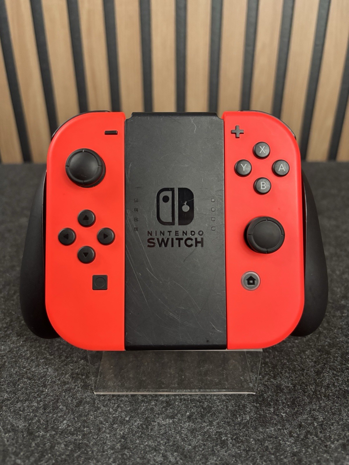Nintendo Switch OEM Joy Con Pair Controller Neon Red w/ Grip - TESTED