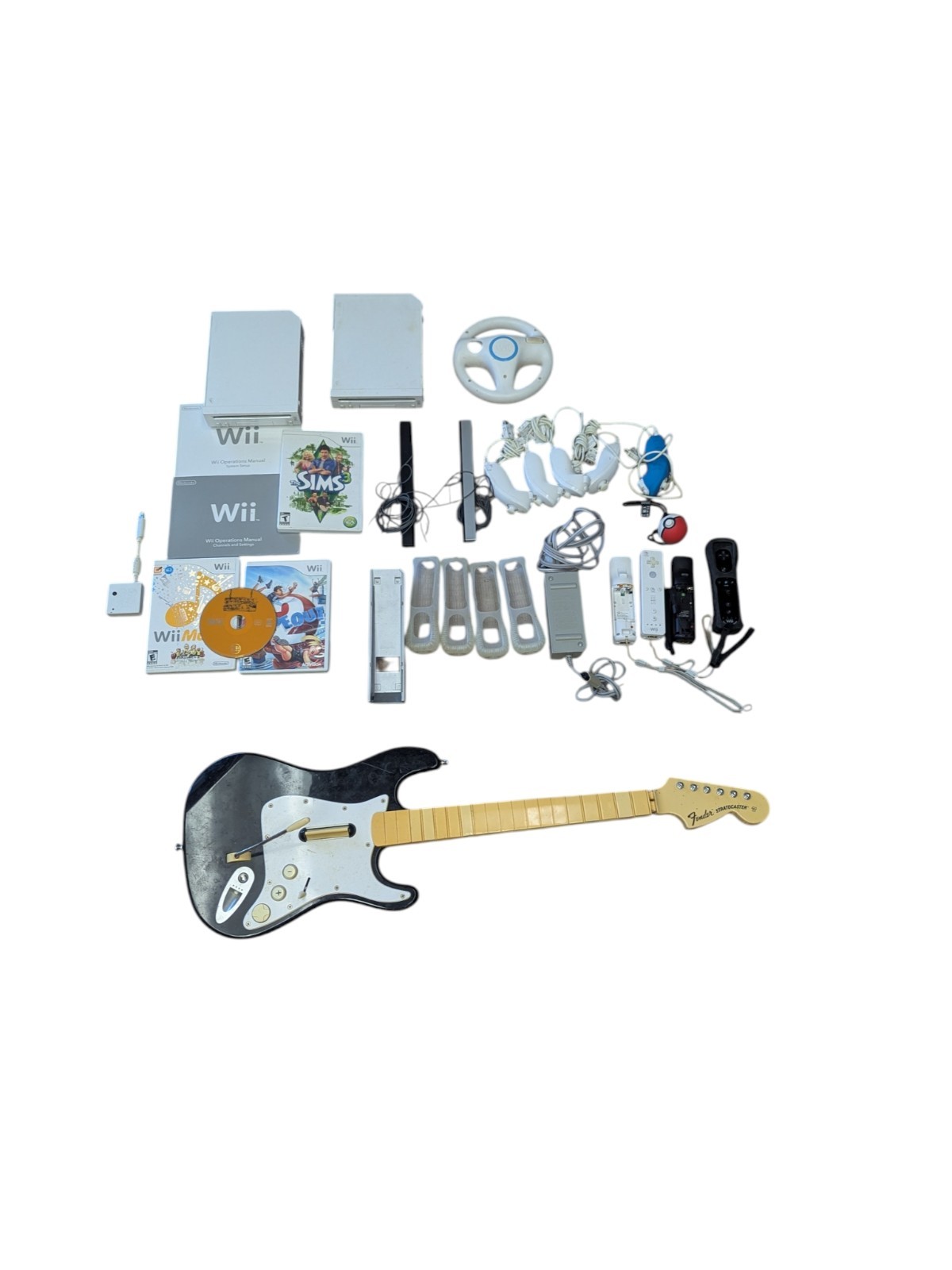 Nintendo Wii LOT, 2 consoles, controllers, guitar, dongle, Pokemon, 3 games