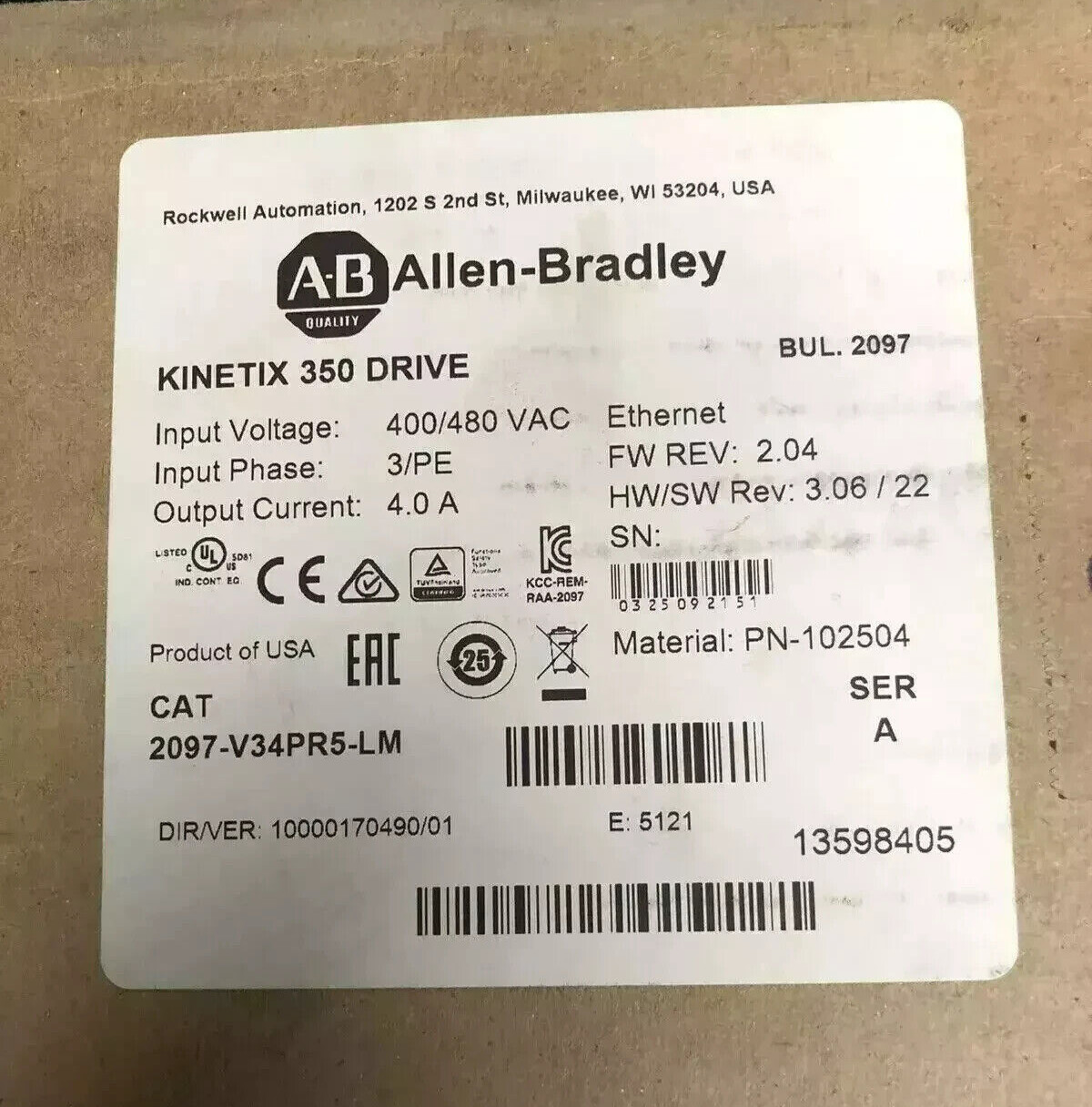 Surplus Sealed Allen-Bradley 2097-V34PR5-LM Kinetix 350 2.0kW Servo Drive