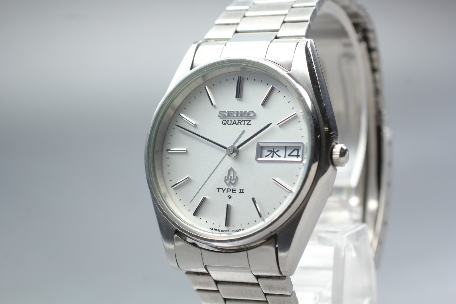 Vintage1979 *N MINT* Seiko Type II 8223-6030 Silver KANJI Quartz Men Watch JAPAN