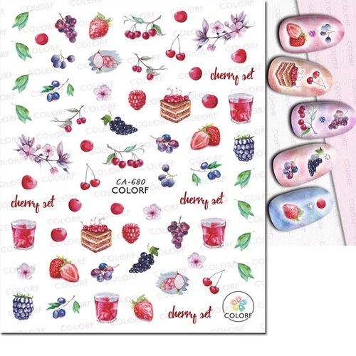 3D Nail Art Decals Watercolor Florals Purple Green Pink Flowers Leafs Fruit Adhe