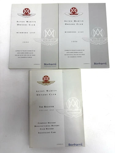 Aston Martin Owners Club-The Register Vol 1 +Members List 2004+2006. 3 Items