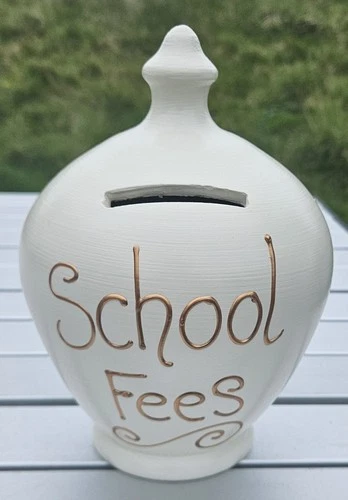 Terramundi School Fees Money Smash Pot Italian Terracotta UK Hand Painted White