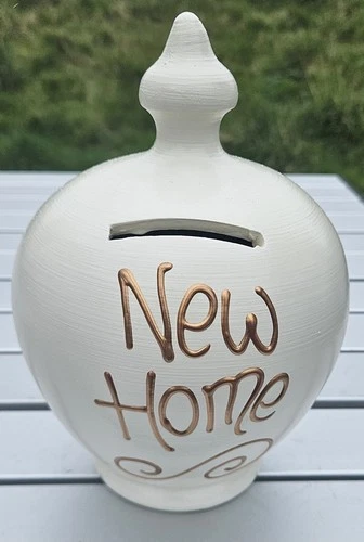 Terramundi New Home Money Smash Pot Italian Terracotta UK Hand Painted White