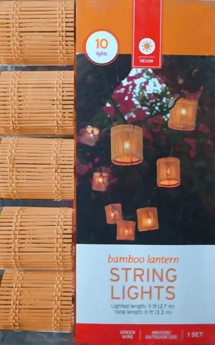 Bamboo Lantern Tiki Patio String Lights - BRAND NEW - 10 Light Set