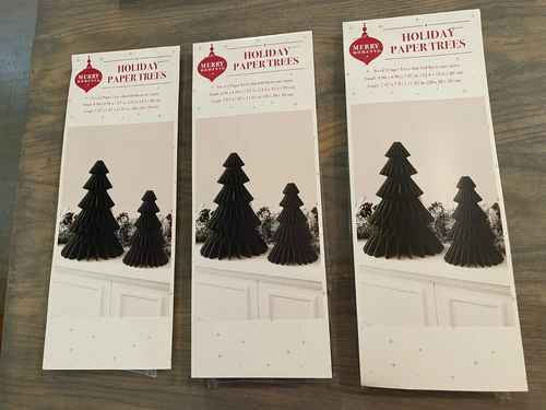 3 (6) MERRY MOMENTS ALDI DARK GREEN GOLD EDGE ACCORDION PAPER CHRISTMAS TREES