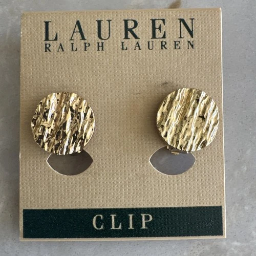 NWT Vintage RALPH LAUREN Gold Tone Round Hammered Clip-on Earrings
