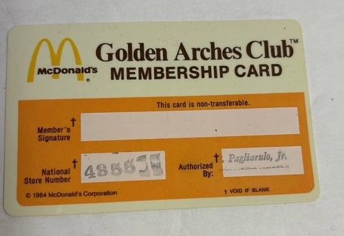 Vintage 1984 McDonald's Golden Arches Club Charge Credit Card Membership Senior