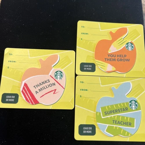 STARBUCKS CARDS 2025 " Set Of 3 DIE-CUT TEACHER CARDS " BRAND NEW NO VALUE