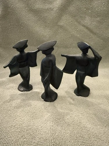 three vintage Mid-Century Japanese Geisha Figurines made of cast iron.