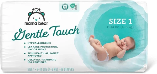 Mama Bear Gentle Touch Diapers 98 Count Size 1 Hypoallergenic Leak Guard Baby